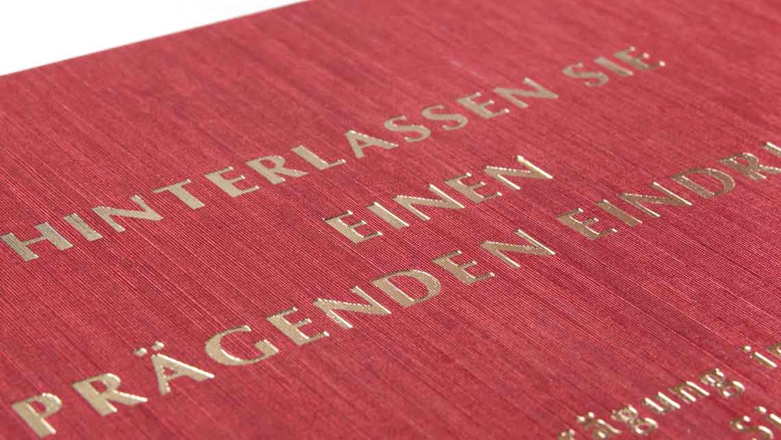 Die schönste Form der Veredelung von Hardcover-Bindungen ist die Heißfolienprägung. Es gibt sie in gold und silber, jedoch gilt es manches zu beachten.
