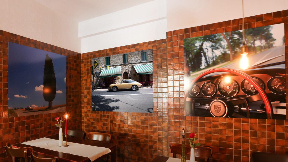 Vor ein paar Monaten hatten wir die Gelegenheit, ein Papier von SIHL zu testen, um genau zu sein das SIHL Maranello Photo Paper PE 195 (Sie Fotos zum Durchblättern). Die Motive stellte Fotograf Wolfang Gröger-Meier zur Verfügung. Es handelt sich um wunderschöne Aufnahmen eines Porsche-Oldtimers in Italien. Das Thema passte einwandfrei, zumal die Bilder heute im italienischen Restaurant Cuore hängen.